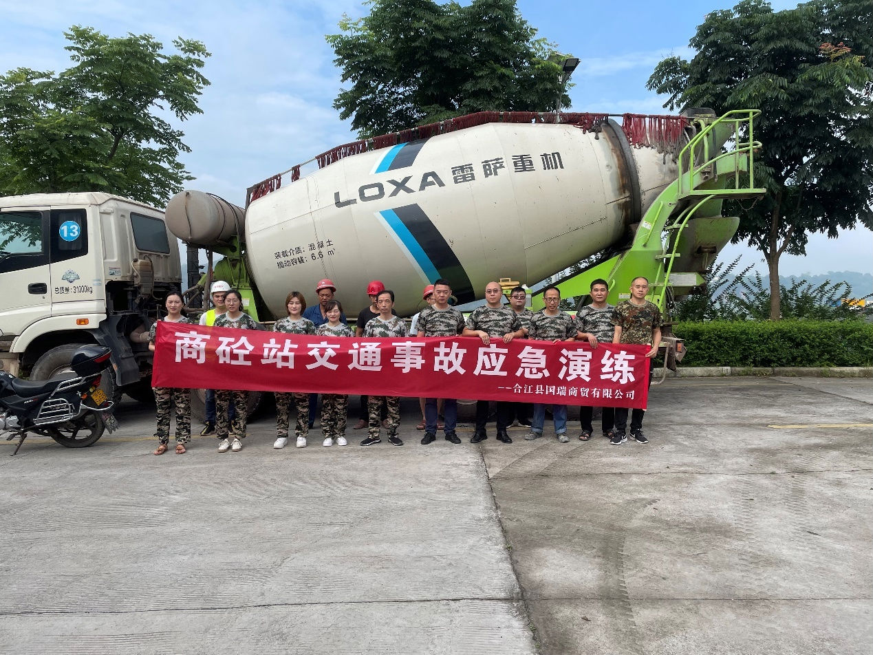 为进一步提高职工的安全意识和自救自护逃生的能力, 2022 年 6 月 24 日 上 午 , 国 瑞 商 贸 公 司 分 别 在 商 砼 站 和 榕 山 民用码头开展了交通事故和防洪抢险应急演练。