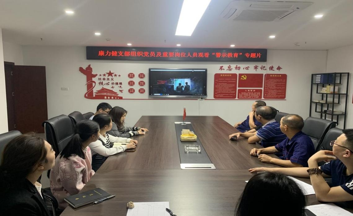 2022 年 5 月 16 日 下 午 , 康 力 健 党 支 部 组 织 党 员 及 重 要 岗位人员等在会议室开展了警示教育专题学习会议。
