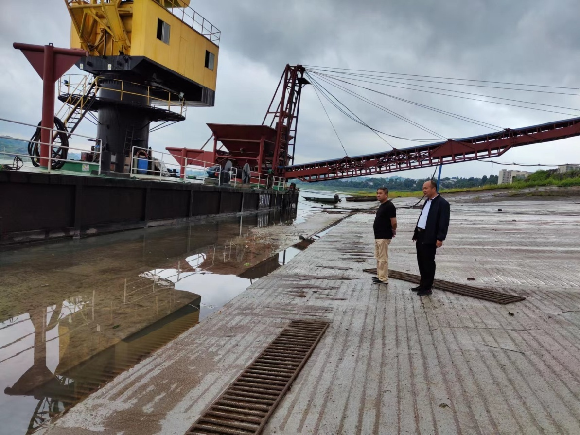 2022 年 5 月 9 日, 国瑞商贸总经理罗桂林带领公司职工 在榕山民用码头开展防汛减灾隐患排查工作。