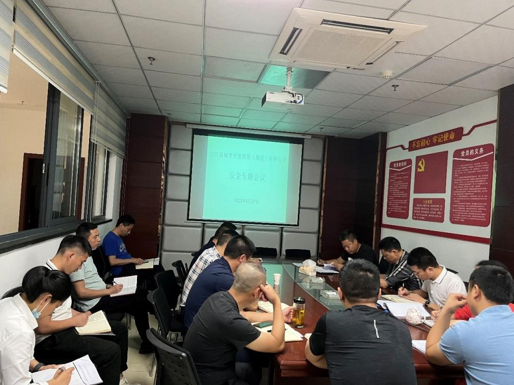 2022 年 4 月 27 日 , 合 江 县 城 市 开 发 投 资 ( 集 团 ) 有 限 公司董事长兼总经理鞠志良召集全体中层干部、 各部门及下 属 子 公 司 安 全 管 理 人 员 开 展 “ 五 一 ” 节 前 安 全 生 产 工 作 专 题 部 署。