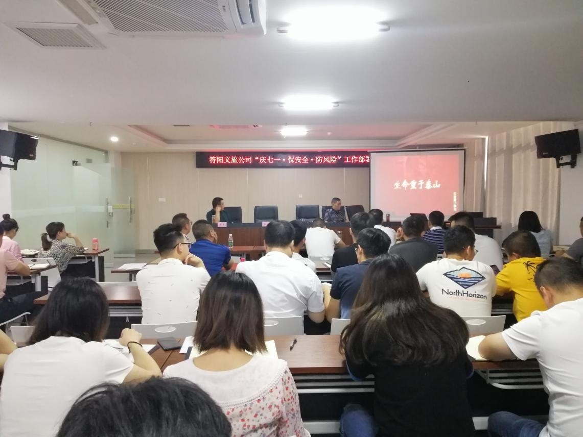 2021年6月23日,符阳文旅公司召开“ 庆七一·保安全·防风险”工作部署会,bsports必一体育集团副总胡天华参加会议,公司总经理吴平主持会议,公司全体员工及龙挂山项目 参建单位项目负责人、安全管理人员参加 。