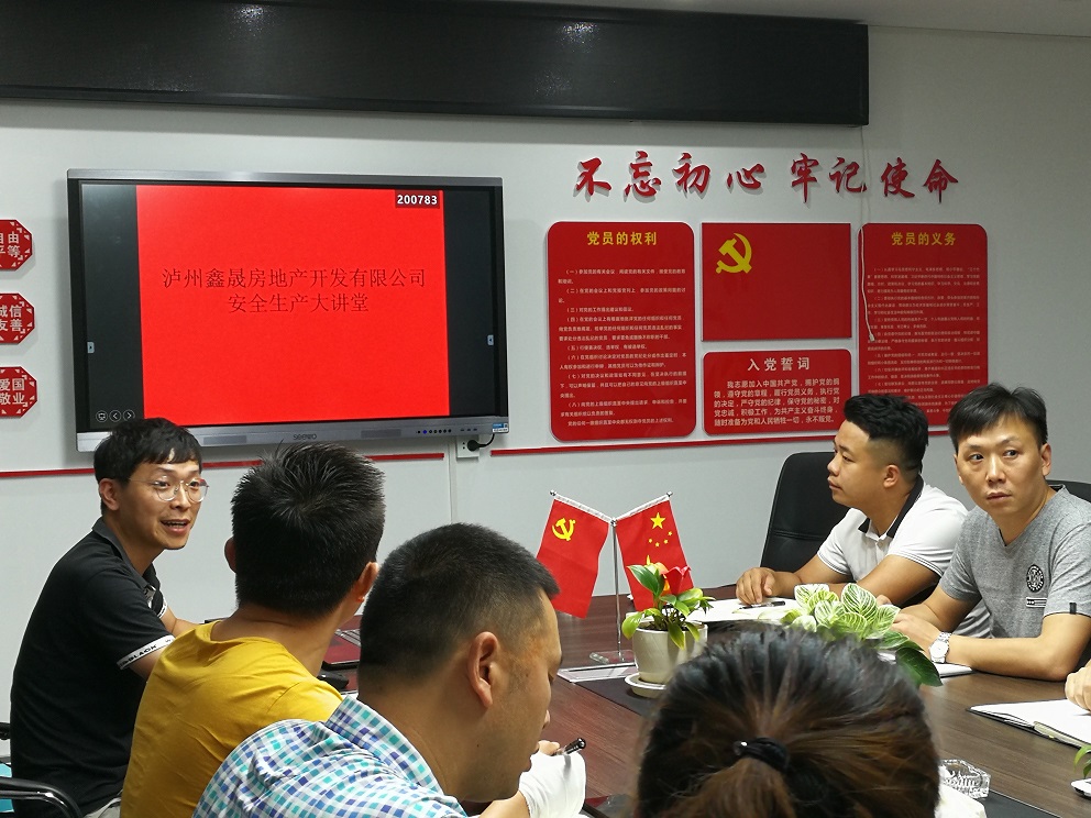 2020年6月30日,泸州鑫晟房地产开发有限司组织全体职工开展安全知识大讲堂活动。本次活动邀请鑫晟学府项目安全负责人刘坤对建筑行业安全防护进行讲解培训,从加强员工综合素质入手,努力提高员工风险辨识、安全防护和自救互救能力,提高全体员工的安全素养和安全生产操作水平。