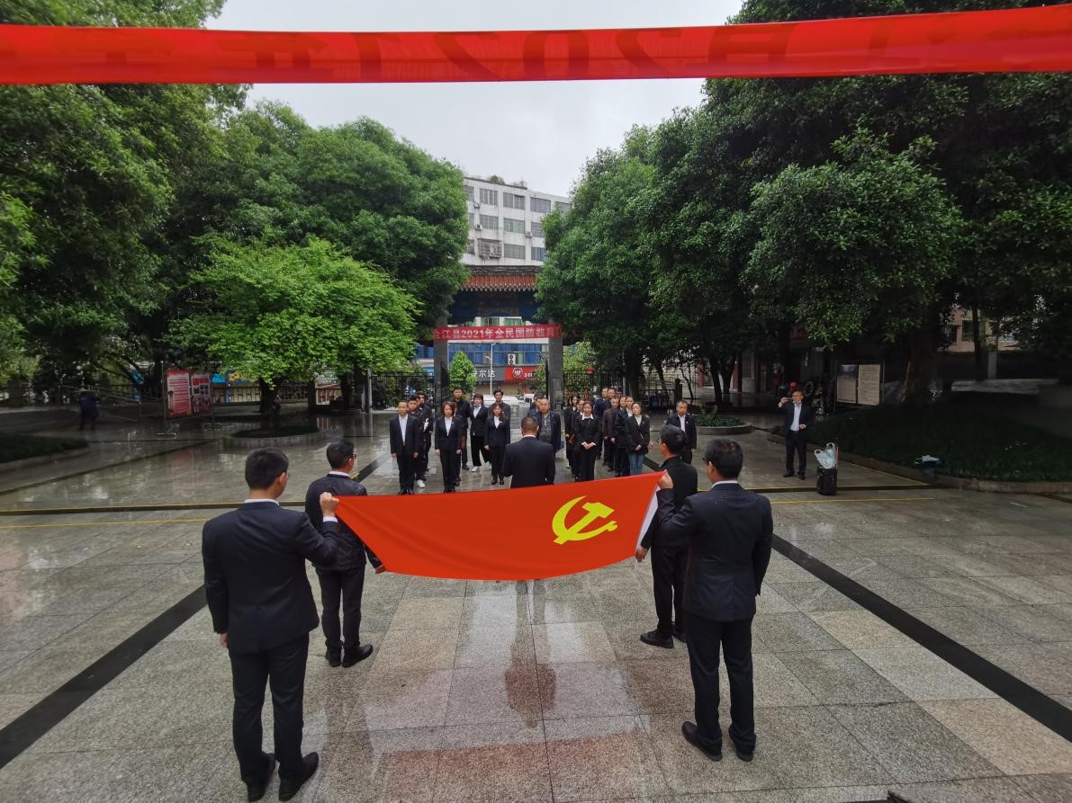 全体党员干部面向党旗,举起右拳,重温入党誓词。