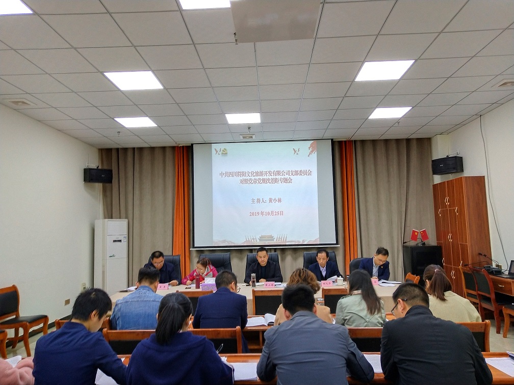 2019年10月25日下午,符阳文旅党支部召开“不忘初心、牢记使命”主题教育对照党章党规找差距专题会议,集团党委第四指导组组长胡天华同志到会指导。