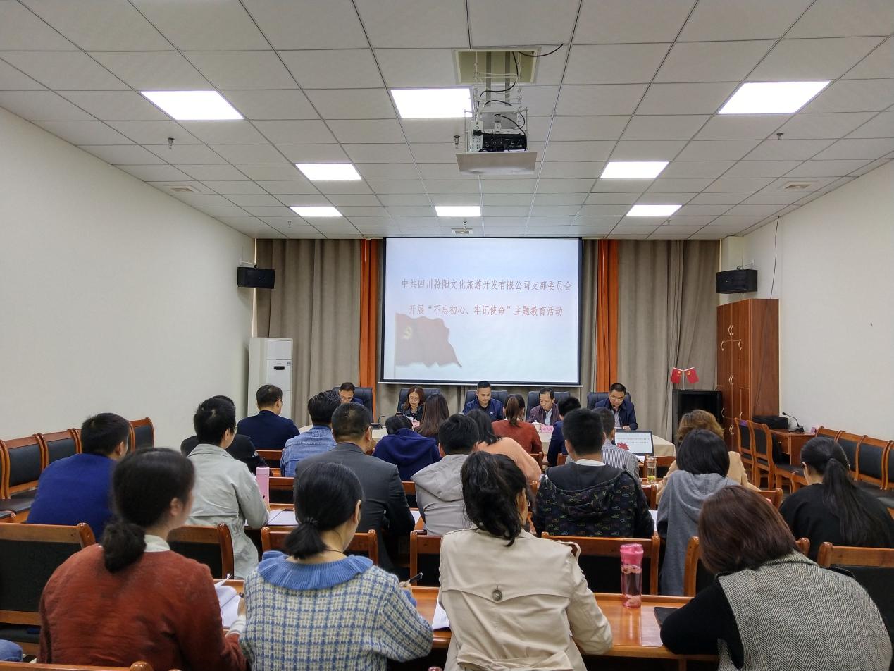 2019年10月17日下午,符阳文旅支部组织公司全体员工开展“不忘初心、牢记使命”主题教育推进会议,集团公司主题教育指导组组长胡天华、成员卓尔到会指导。