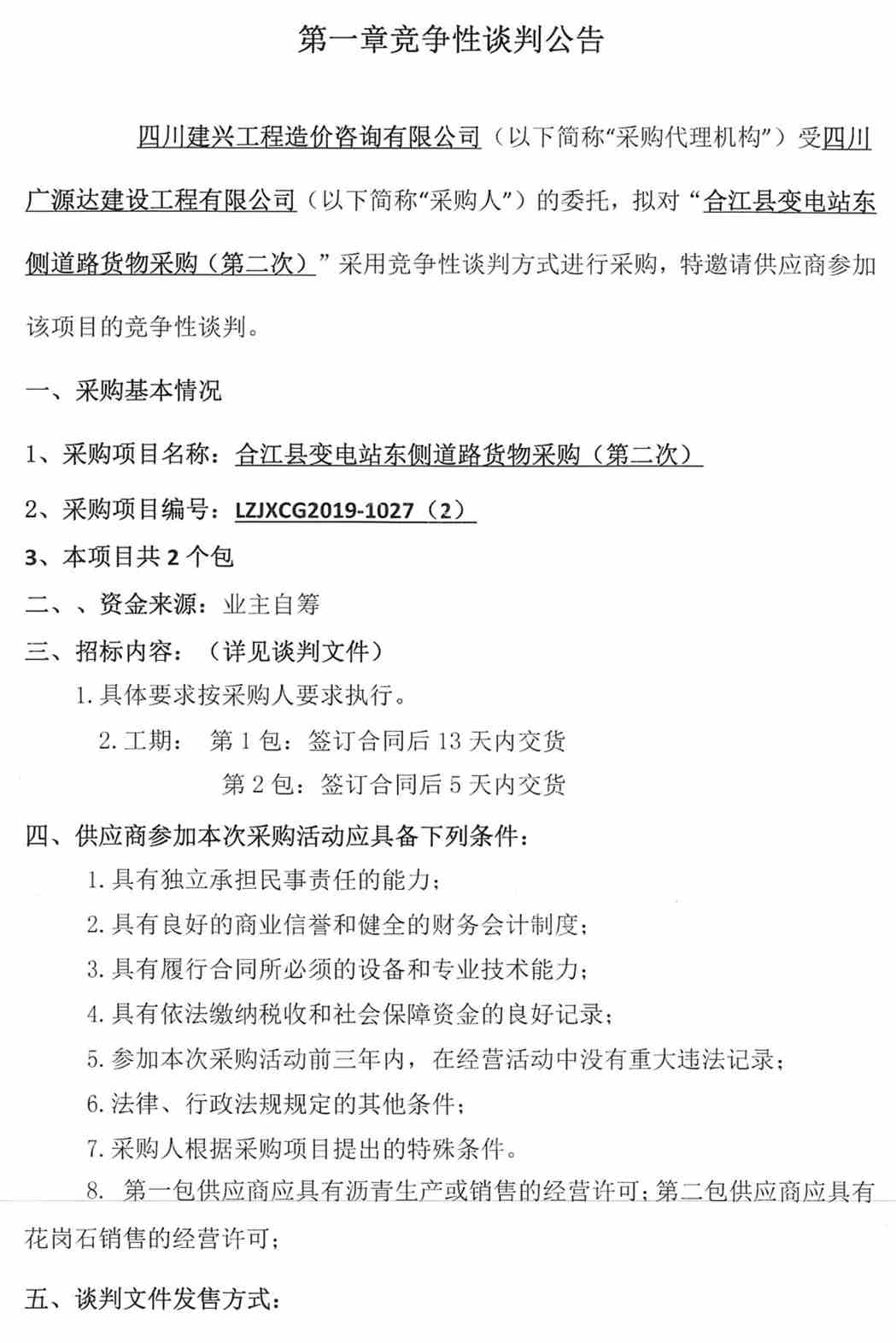 四川广源达建筑工程有限公司合江县变电站东侧道路货物采购公告(第二次)