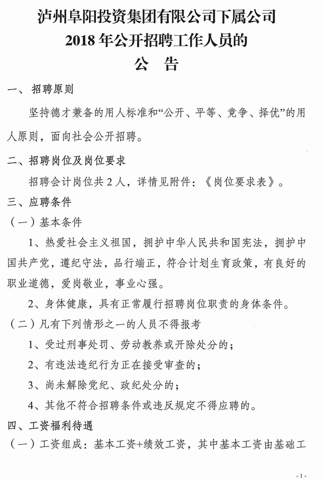 招聘公告:泸州bsports必一体育投资集团有限公司下属公司2018年公开招聘工作人员的公告