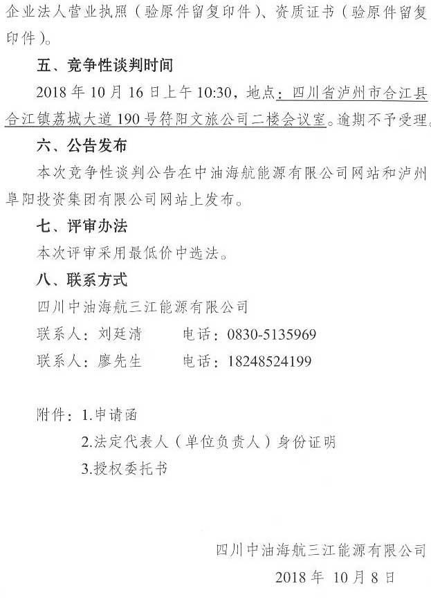 竞争性谈判公告:合江临港工业园区LNG清洁能源推广应用示范项目安全预评价单位竞争性谈判公告