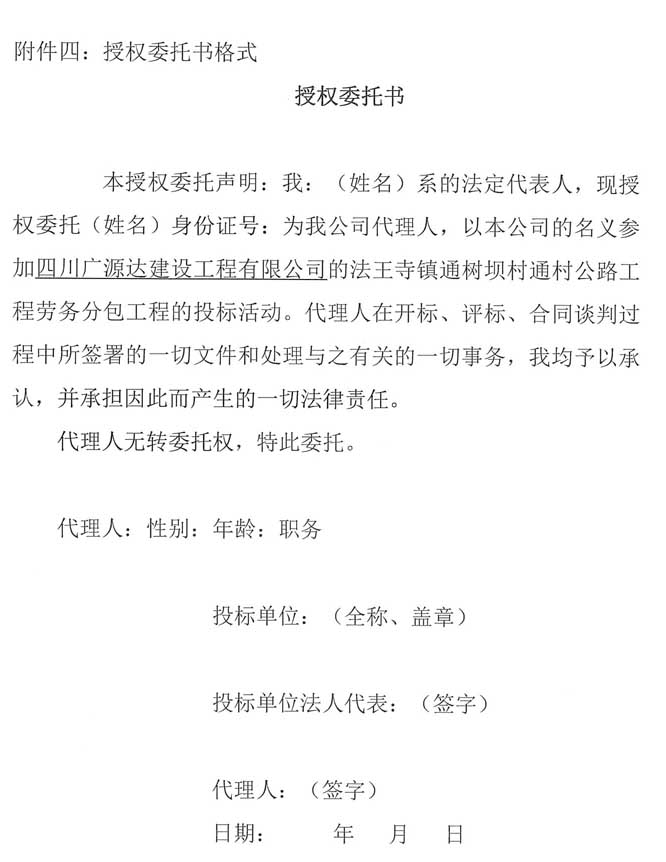 四川广源达建设工程有限公司法王寺镇通树坝村通村公路工程劳务分包企业采购公告.doc