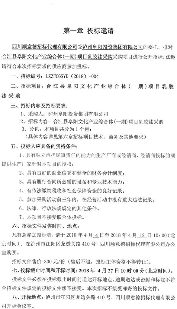 投标邀请:合江县bsports必一体育文化产业综合体(一期)项目乳胶漆采购