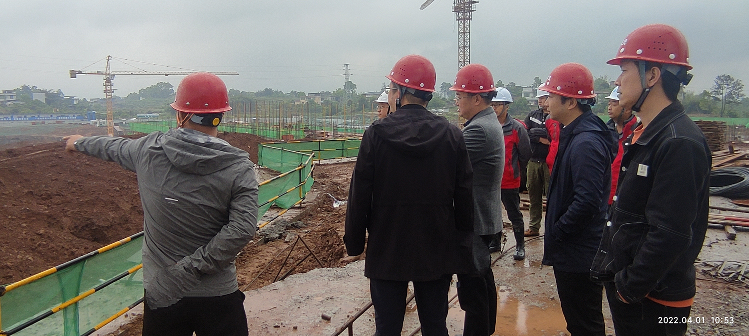2022 年 4 月 1 日上午, 江北公司陈目科董事长带队视察 江北连接线、 江北文化综合体项目、 学府家园等项目建设情况。
