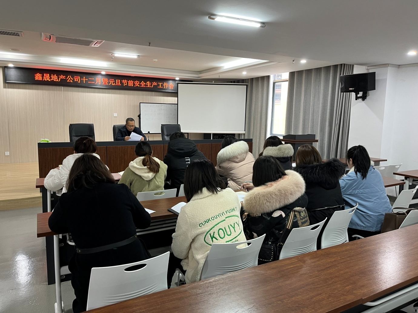 2021年12月27日,泸州鑫晟房地产开发有限公司组织召开十二月暨元旦节前安全生产工作会,会议由董事长任东财主持,公司全体员工参加。