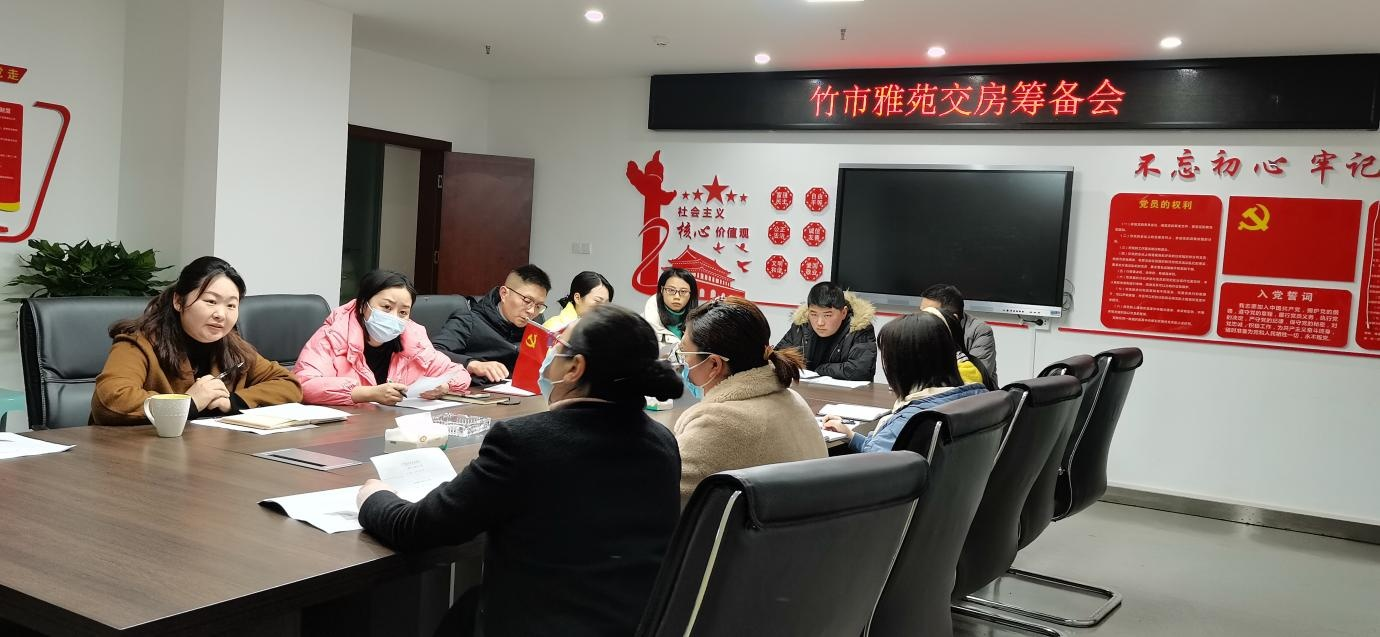 2021年12月7日,鑫晟地产公司瞄准当月目标任务重点工作,召开竹市雅苑项目交房筹备会。会上,鑫晟地产公司会同前期物业公司、项目施工单位,就竹市雅苑项目交房工作相关方案、流程等细节进行了认真讨论研究,确保交房工作圆满顺利完成。