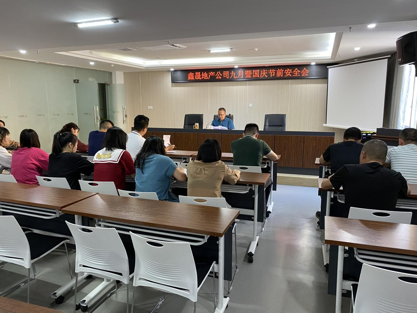 2021年9月29日,泸州鑫晟房地产开发有限公司组织召开九月暨国庆节前安全生产工作会,会议由董事长任东财主持,公司全体员工参加。