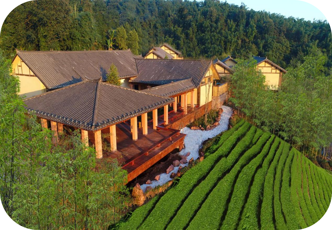 半山云舍建筑面积1246平方米,由六幢具有浓郁川南特色民居风格的吊脚小楼与竹林、茶园、水池、庭院等外部景观组成。设有办公区、景区规划展示大厅、接待服务区、住宿与停车等区块;配置有景区管理、景区招商、地产销售、来宾接待等综合性管理功能,其中设有1个能容纳50人以上的多功能会议室,设有1个能至少容纳10人以上的小会议室,配有3个以上男女厕位的公共卫生间;建筑设计上以当地的丹霞红石、穿斗木构等传统文化因素为精神内核,在空间布局上融入落地门窗、观景平台等现代审美元素,匠心打造,风格鲜明。