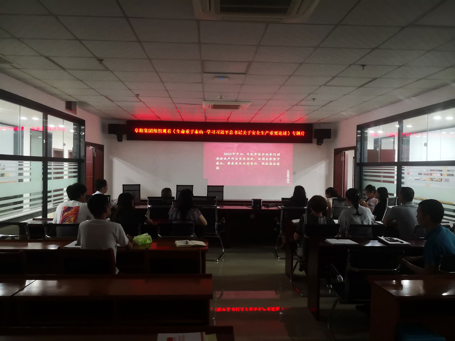 2021 年 6 月 23 日下午,由集团公司副总经理胡天华组 织学习观看了 《生命重于泰山—学习习近平总书记关于安全 生产重要论述》 电视专题片。通过学习专题片,进一步强化 了员工的安全生产意识,牢固树立安全生产“红线” ,强调 生命重于泰山, 要求层层压实责任, 狠抓整改落实。 在安全 生产中加强隐患排查,并做好安全预防。