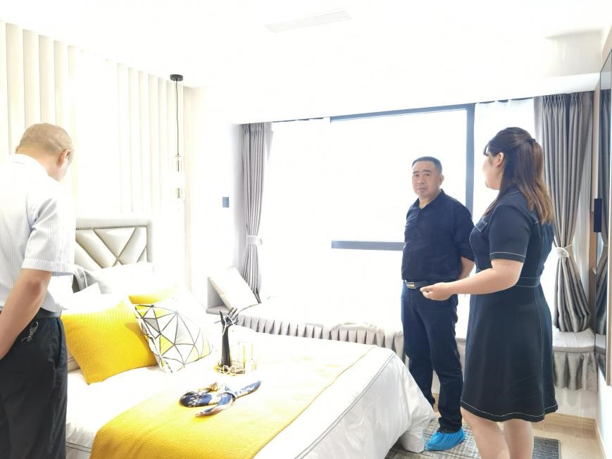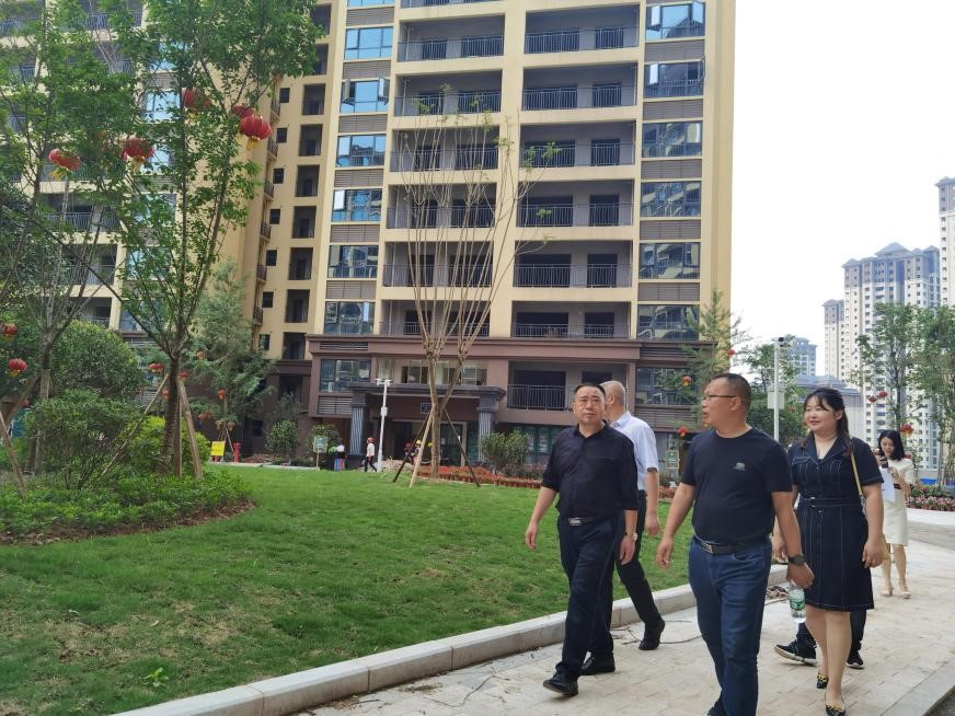 2021年5月11日,财监局局长杨向前率队调研鑫晟学府项目建设销售情况。调研组一行实地查看了中庭建设情况、样板间装修情况,并详细了解了项目销售情况。杨局强调:鑫晟学府项目作为县国企第一个房开项目,一定要及时完成建设销售工作,体现经济效益。
