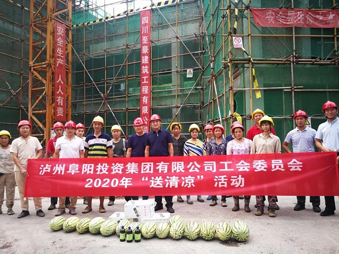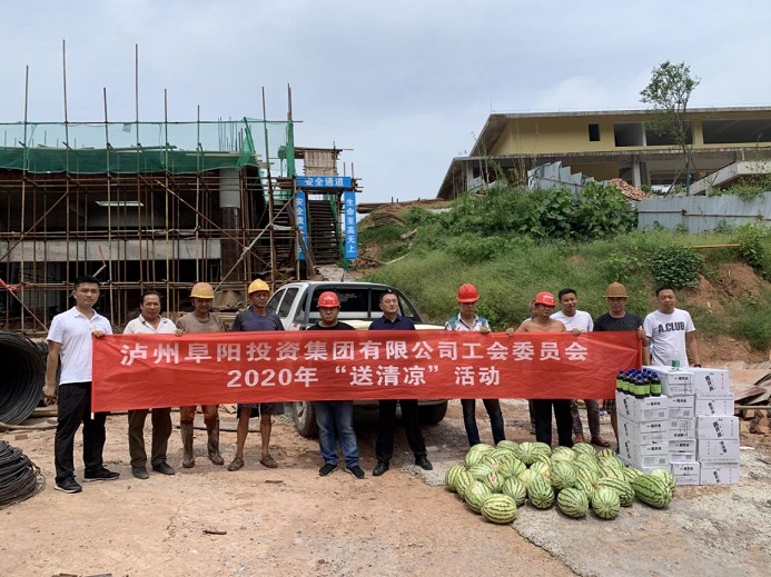 近日,合江持续高温,为保障一线人员的身体健康,确保各项生产工作安全有序开展,8月11日,集团公司党委委员、工会主席袁健,带领集团党群纪检工作部、综合部先后深入鑫晟学府、殡仪中心、龙挂山景区等十多个项目建设现场,看望慰问奋战在一线的工作者,为他们送去清凉物资和关心关爱。