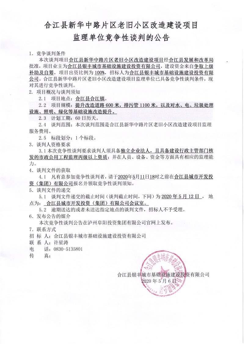 合江县新华中路片区老旧小区改造建设项目监理单位竞争性谈判的公告