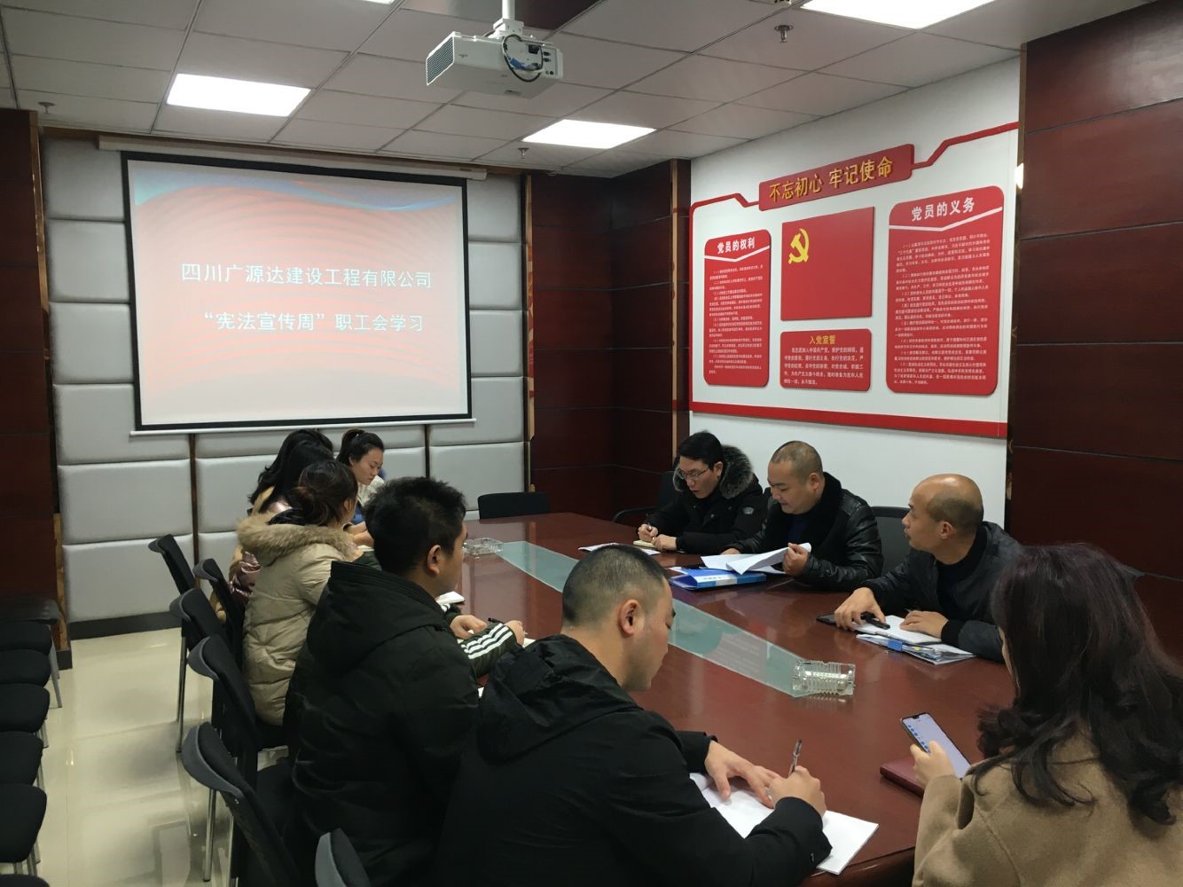 2019年11月3日,四川广源达建设工程有限公司谯棣升董事长主持召开“宪法宣传周”职工学习会议,公司全体职工参加。