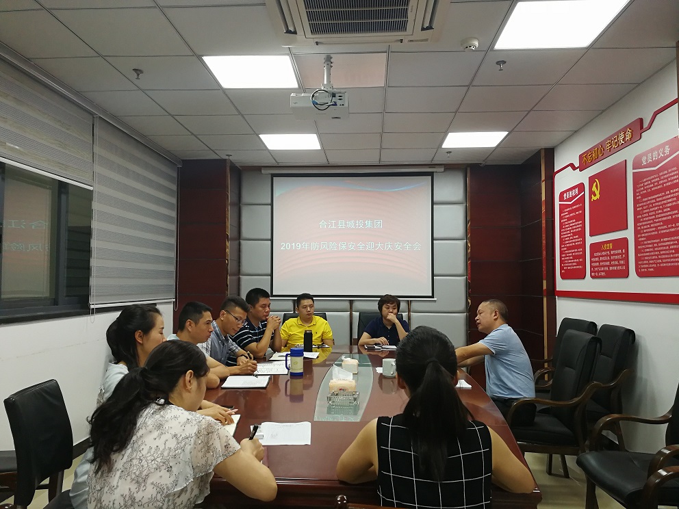 2019年9月12日上午,合江县城市开发投资(集团)有限公司总经理张学彬召集各部门、各子公司召开2019年“防风险保安全迎大庆”暨节前安全生产工作会议,传达贯彻各级安全生产会议、文件精神,落实中秋、国庆节前安全生产大检查、节假日期间值班值守等工作。