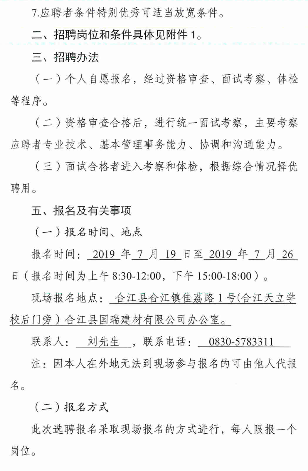 合江县国瑞建材有限公司2019年7月公开招聘工作人员公告