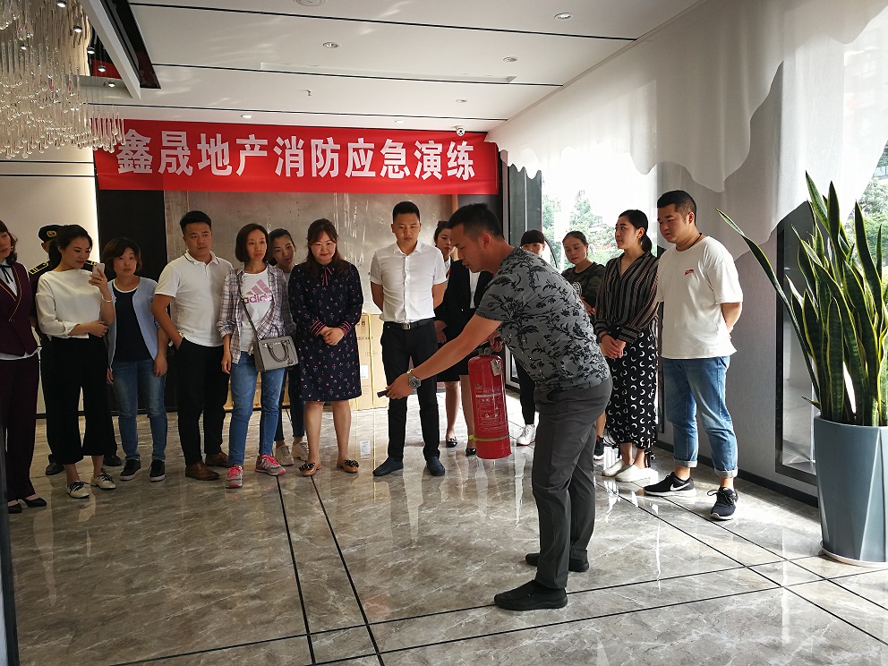 为增强职工的消防意识,提升职工在突发事件中的应急水平,提高职工的消防实践技能,2019年5月15日,泸州鑫晟房地产开发有限公司组织各部门和销售公司、物业公司在售楼部开展消防安全应急演练。演练活动主要围绕“消防报警、积极救援、组织灭火、紧急疏散”四个方面进行。