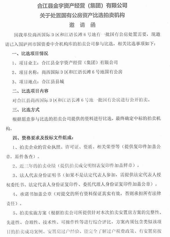 关于金宇公司处置国有公房资产比选拍卖机构的公告