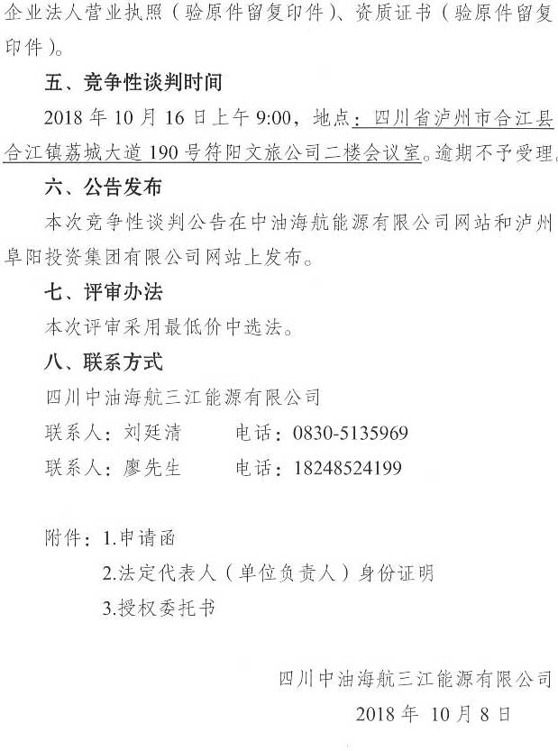 竞争性谈判公告:合江临港工业园区LNG清洁能源推广应用示范项目安全预评价单位竞争性谈判公告
