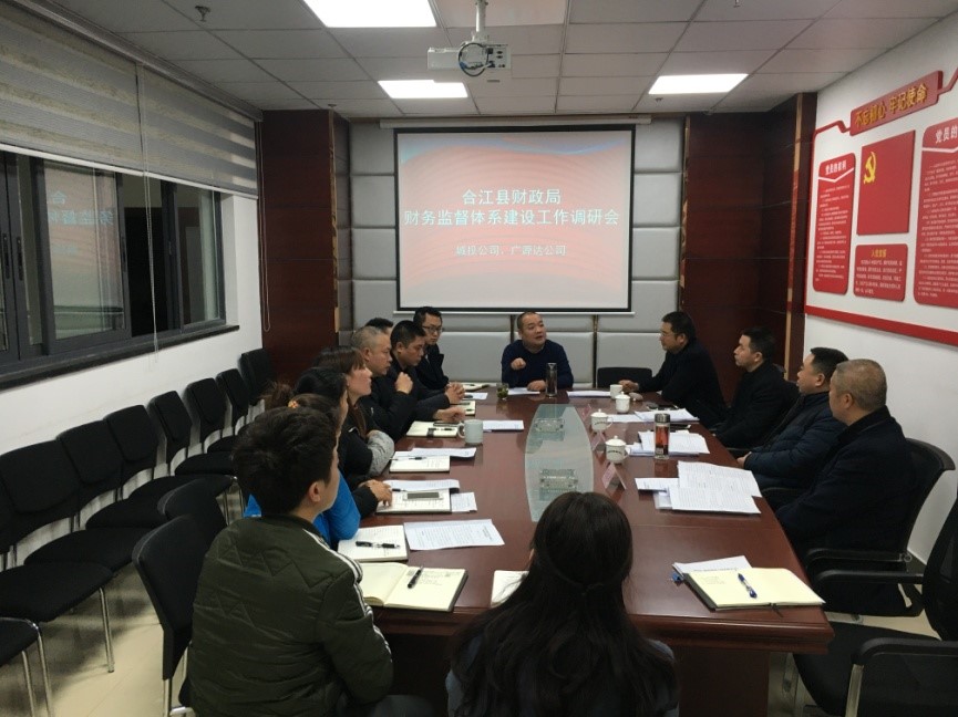 2019年11月21日,合江县财政局党组成员、财监局局长杨向前带队对城投公司、广源达公司开展财务监督体系建设工作调研。公司主要领导、监事会主席、各部门负责人、财务人员等参会。