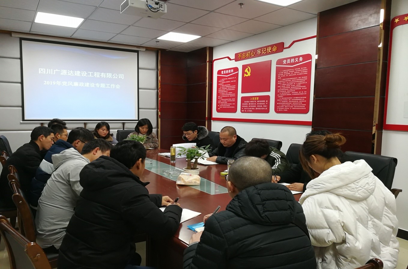 1月11日下午,四川广源达建设工程有限公司组织召开了2019年第一季度安全生产工作暨党风廉政建设工作会议。会上,董事长谯棣升领学了安全生产工作相关文件,全面总结了2018年安全生产工作目标完成情况,并对2019年公司的安全生产工作提出了要求。同时,董事长谯棣升还着重强调了廉洁从业相关事宜,要求抓党风廉政建设要像抓企业安全生产一样持之以恒,与企业经营发展同频共振;把廉洁从业作为企业发展的出发点,坚持以廉洁凝聚人心,以廉洁树立形象。