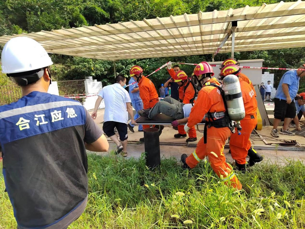 2022 年 8 月 5 日, 白沙镇人民政府、 江北消防中队、 白沙卫生院和泸州汇鑫环保科技有限公司联合在白沙镇城市生活污水处理厂开展有限空间作业应急演练, 白沙镇副镇长周雪莲、 安办主任牟叶奎、 江北消防中队指导员王小峰、 汇 鑫公司副经理刘可参加了本次演练。