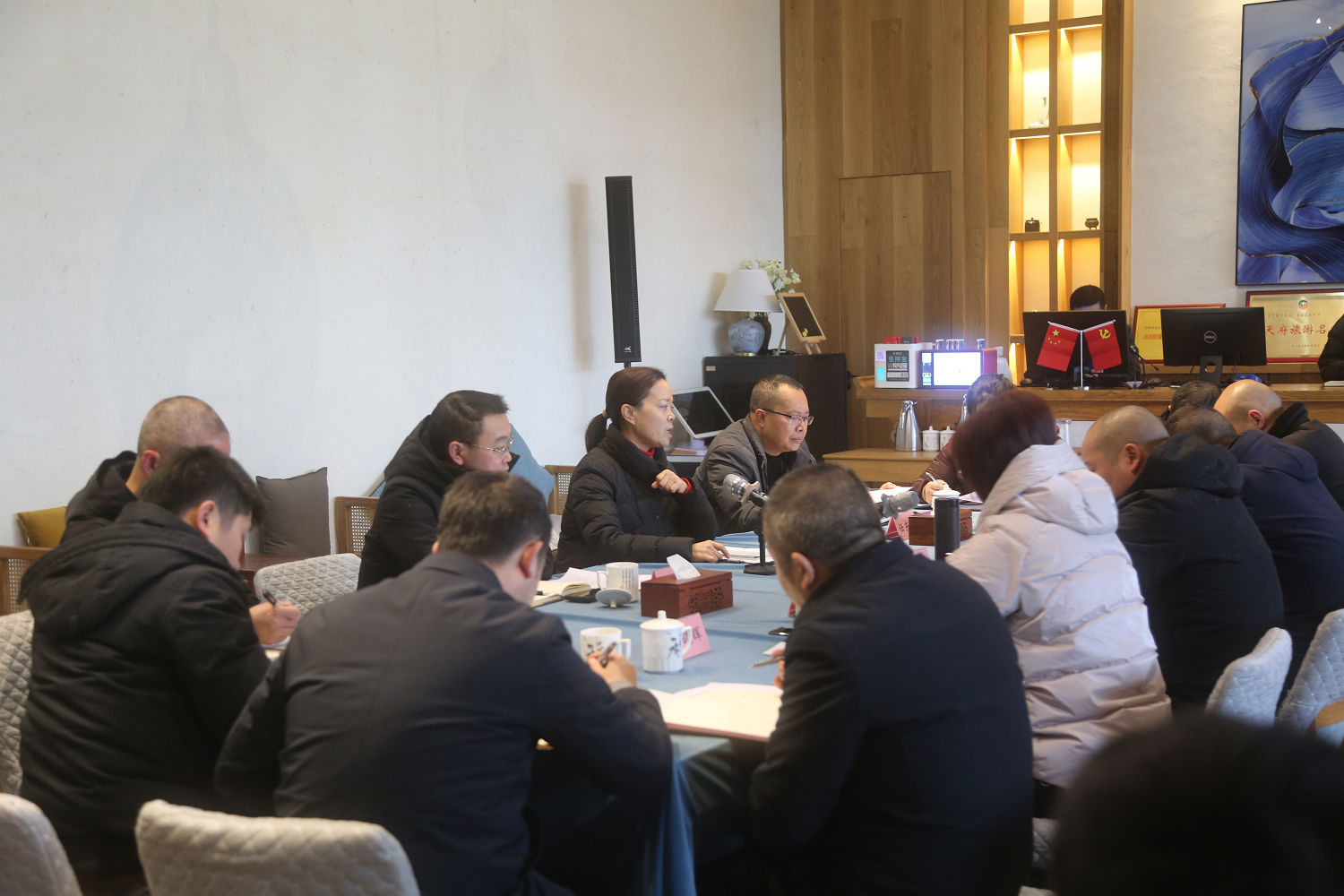 游启君一行先到景区天街进行现场勘查, 详细了解了景 区工程进度及预期运营方向, 随后在法王寺龙挂山景区—半 山云舍召开了座谈会。 会上, 集团公司领导对景区前期建设、 运营工作给予了充分肯定, 并鼓励文旅公司员工要继续铆足 干劲、整合力量来加快项目建设,力争早日全部投入运营。